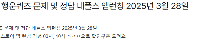 토스 (toss) 행운퀴즈 문제 및 정답 네플스 앱런칭 2025년 3월 28일 문제:네이버플러스 스토어 앱 런칭 기...